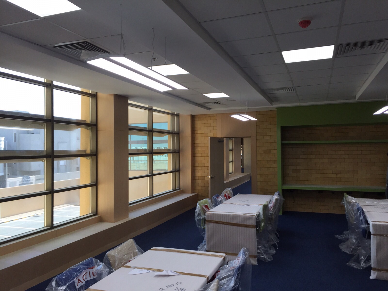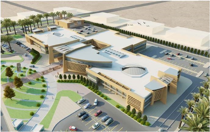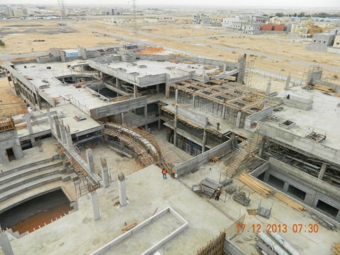 البناء الإجمالية 16740 م2 الذي يتضمن هيكل خرساني كامل واعمال السباكة والتكييف والأعمال الكهربائية. كما تم