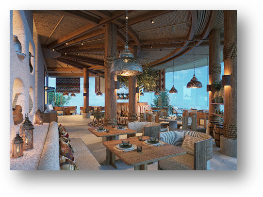 and MEP that contains of 7th floor with 68 rooms and suites, 18 chalets, spa, gym, swimming pool, restaurant,